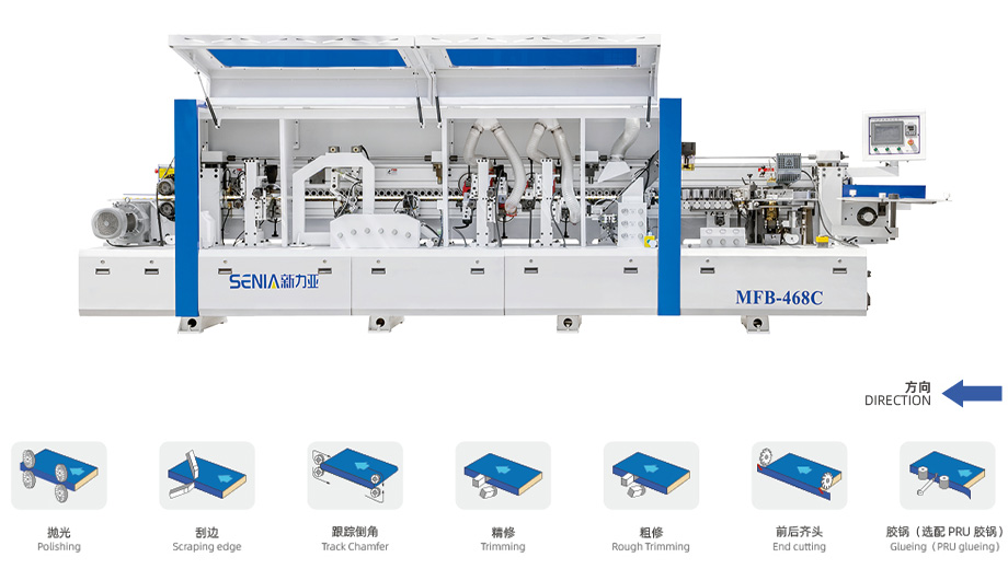 | 電動升降 | 進料速度 | 板材寬度 | 板材厚度 | 板材長度 | 封邊帶寬度 | 封邊帶厚度 | 工作氣壓 | 最小板材尺寸 | 總功率 | 外形尺寸 |